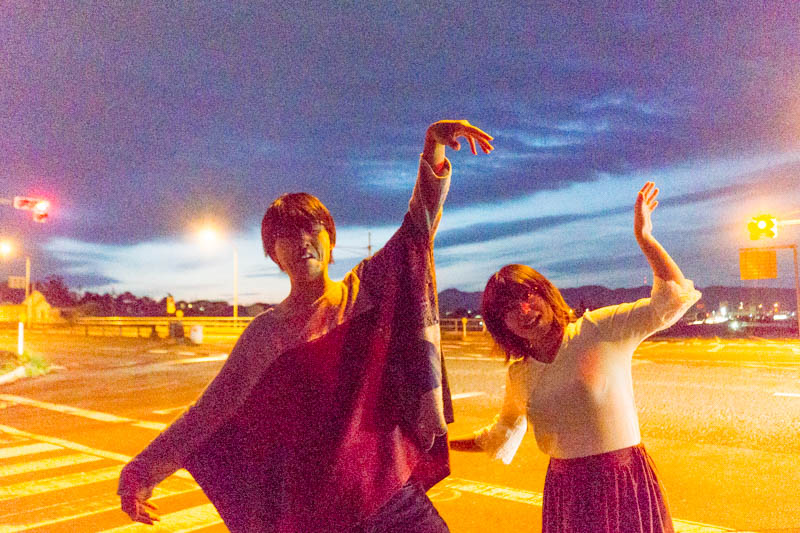 天の川交差点で朝からポージングを決めるガーサンとお枚の方。