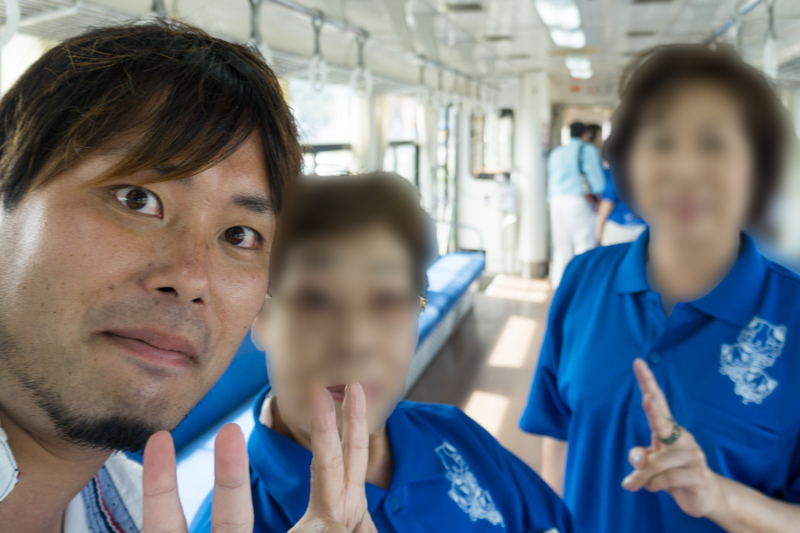 (隣のおばちゃん、服に門真って書いてる…どうもこの電車内は旅行ツアーの人でいっぱいみたいや…信楽で京阪沿線の人と出会うとかこれって運命かな…)