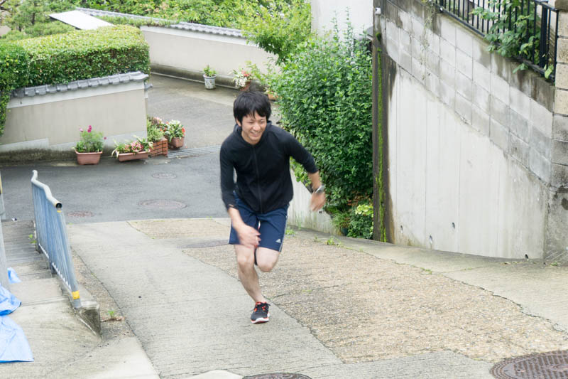 とりあえずパイセンであるすどんがまずはいつもどおりの坂道ダッシュ……と言いたいところですが、パイセンの権限「先にやれ!」を発動させたすどん。