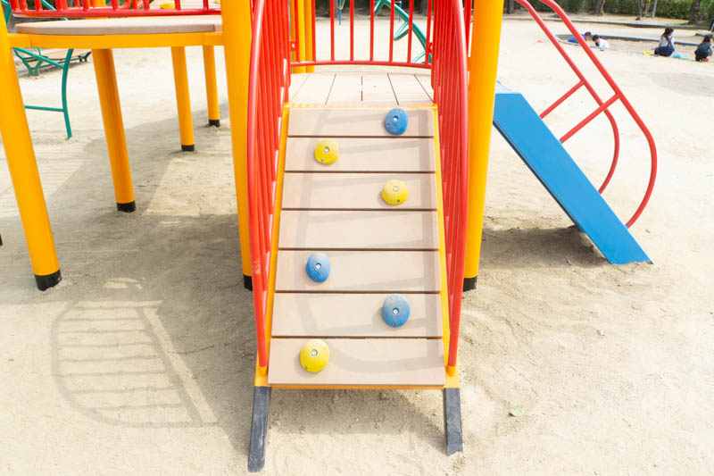 緑の手すりから登っていくか、子供の体力に合わせて遊べる遊具になっていました。