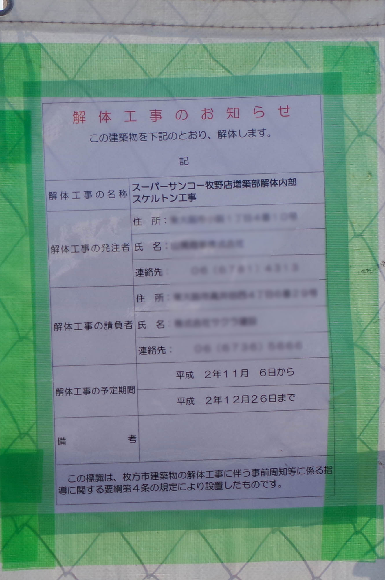 牧野本町の「スーパーサンコー 牧野店」があった建物が解体されています。