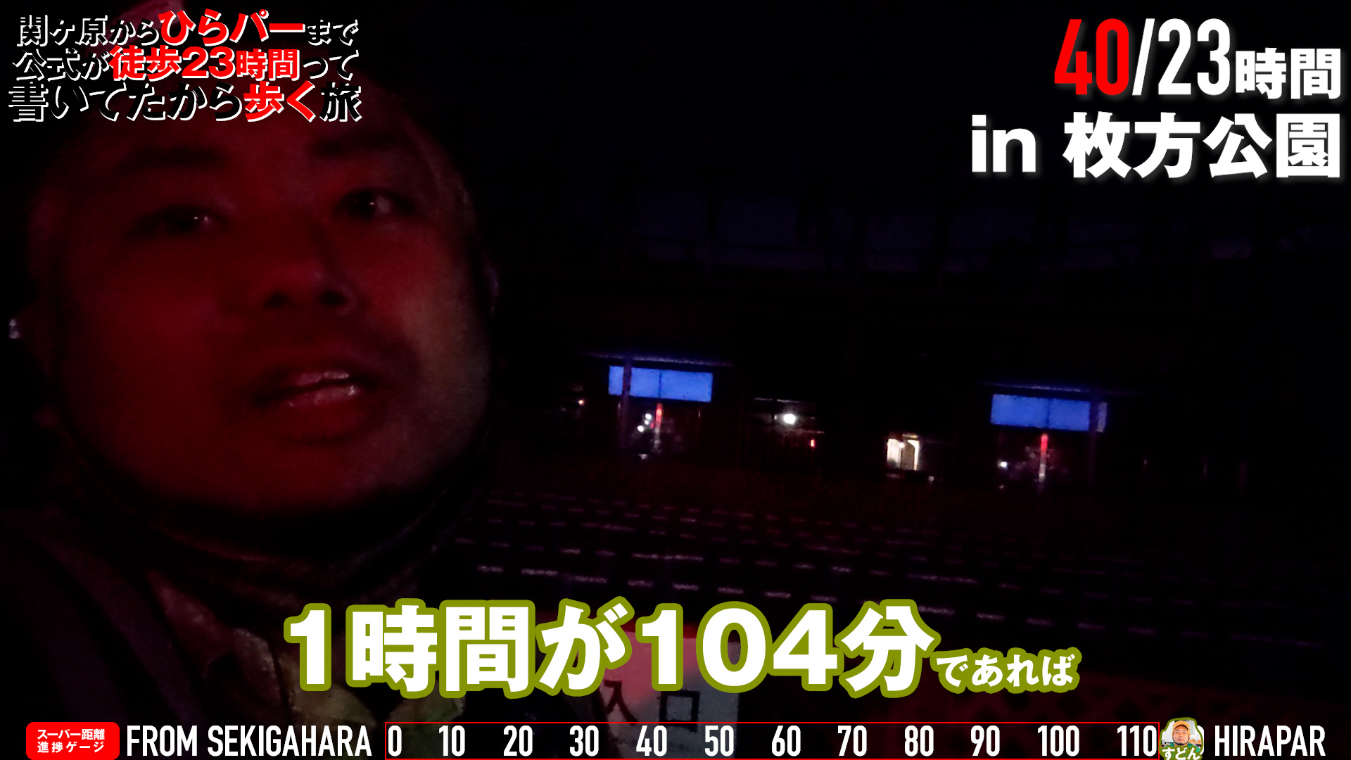 ここからはすどん1人で、牧野からひらパーまで歩きます。