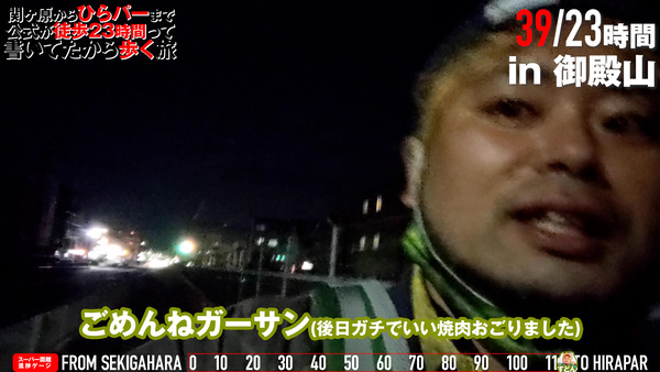 僕も結果的に当初の罰ゲームである24時間徒歩を、あいだで休憩したとはいえ達成したので、ギブアップのことは忘れてください!