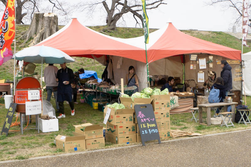野菜を売っている屋台もありました。春キャベツ1玉100円、2玉で150円というのは結構安いのでは!
