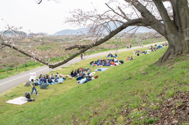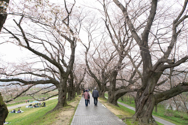 背割堤は1km以上ある道。入口付近ではポツポツと人がいたのですが、