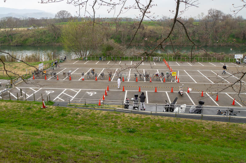 駐車場はありませんが、駐輪場はあります。お花見の際に大きな荷物を運ぶ係としてバイク乗りを用意するといいかもしれません。