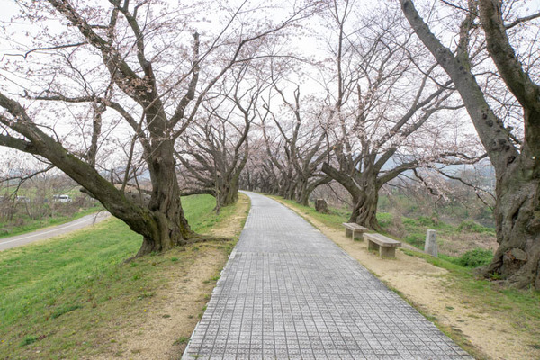 改札から左へ行き、踏切をこえ、ずっと真っ直ぐ行くと「背割堤」があります。