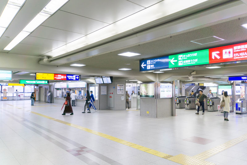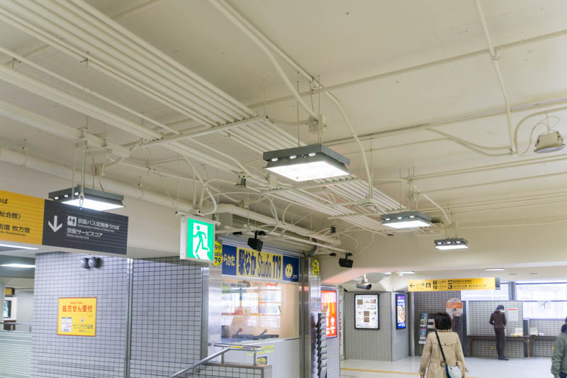 最後に、中央改札正面にある京阪百貨店2階の入り口部分の写真。青いフェンスで覆われていましたが、ここに無印良品が入る予定です。