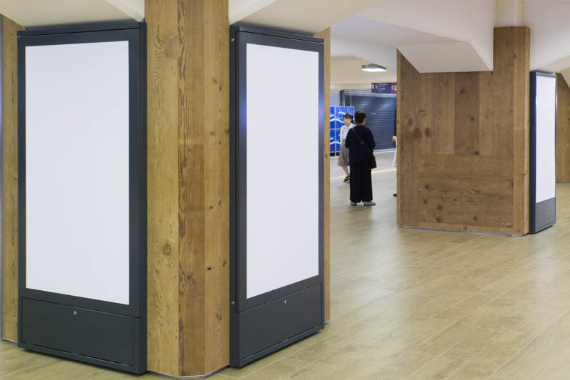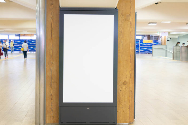 市駅中央改札前にある柱に「デジタルサイネージ」と呼ばれる電子看板が設置されていました。