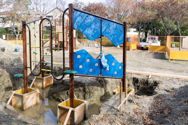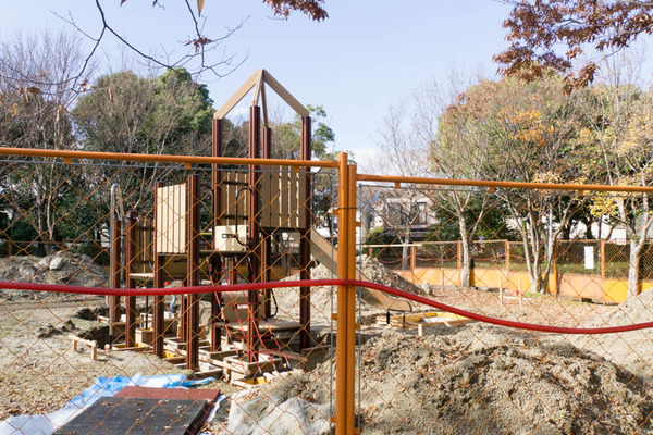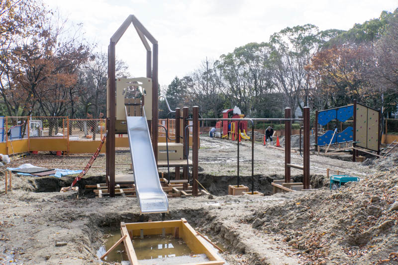 まずは設置途中と思われる滑り台。こんな感じの基礎工事が行われているんですねー。