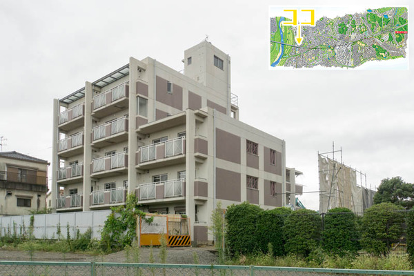 続いてガソリンスタンドの裏辺りから撮影。立ち退きが始まっていました。