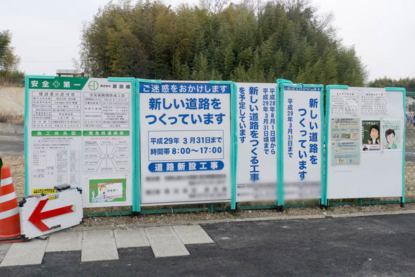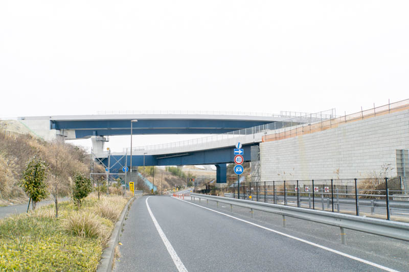 以前お伝えしたコストコの近くで山手幹線に接続する、新名神のインターに行くための新しい道路の工事終了予定が前回お伝えした2月15日から変更されていました↓