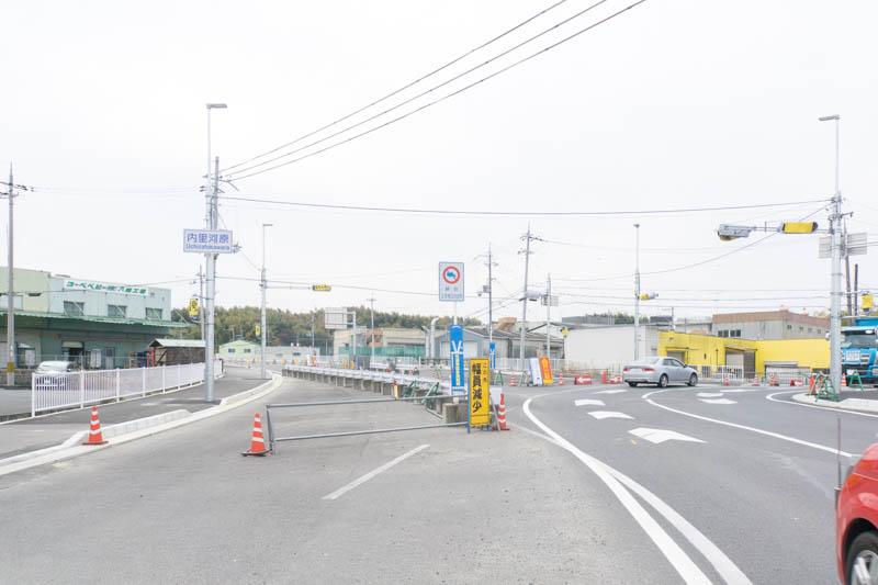 こちらも交差点名は既に「内里河原」と決定されていて、交差点ができていました。