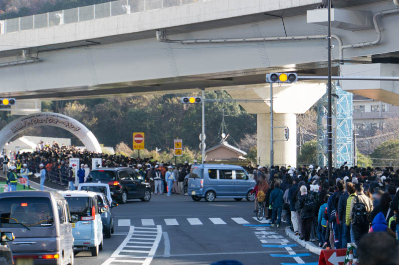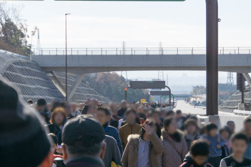 しばらくすると料金所が見えてきました。大きなお祭りが終わった後の駅までの道みたいな、人まみれの道を進みます。