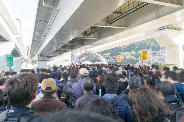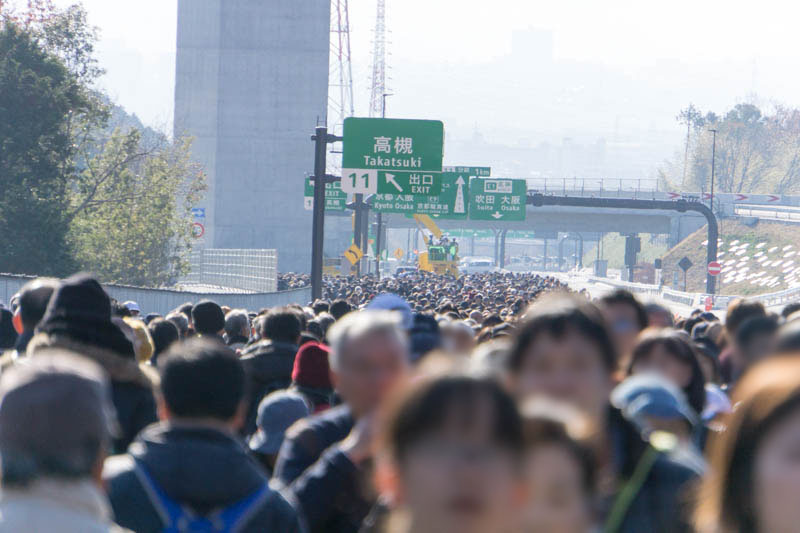 というわけで高槻駅からの臨時バスにのって、現地に到着直後に撮った写真。すごい人。