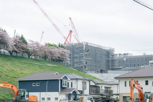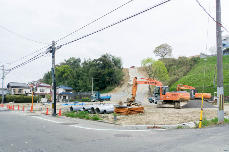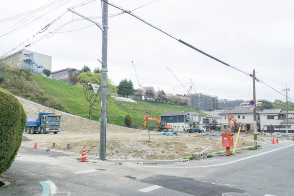 以前お伝えした関西外大御殿山キャンパスの工事も順調に進んでいるもよう。桜が写っているあたりが高陵小です。