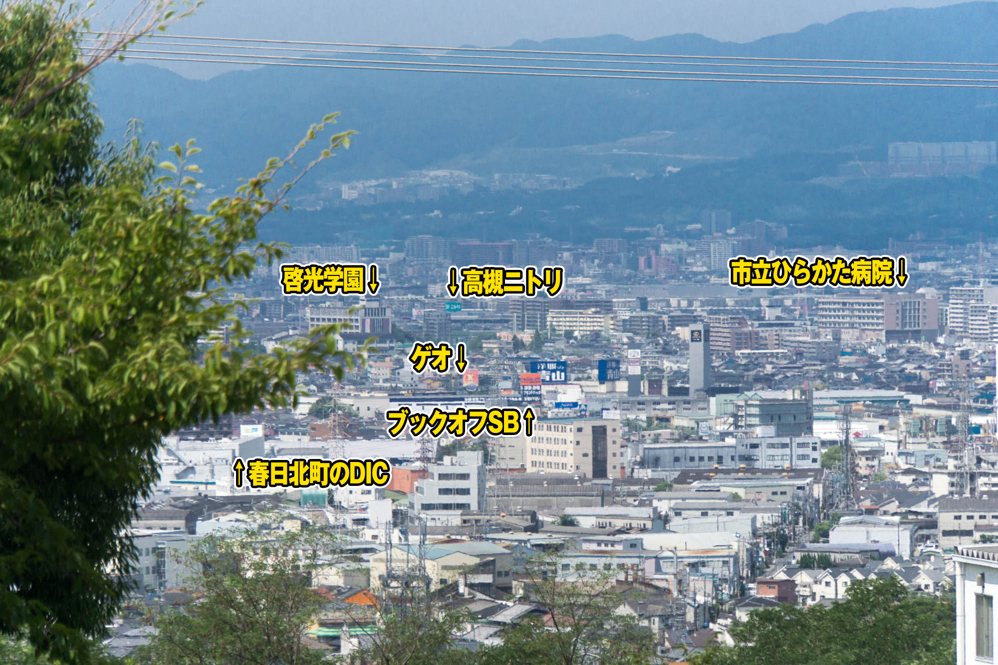 そんなわけで、今回ご紹介する場所は前回の宣言どおり、枚方市内からとなりまして、津田山手の津田サイエンスヒルズにある空見の丘公園から見た枚方の景色です!