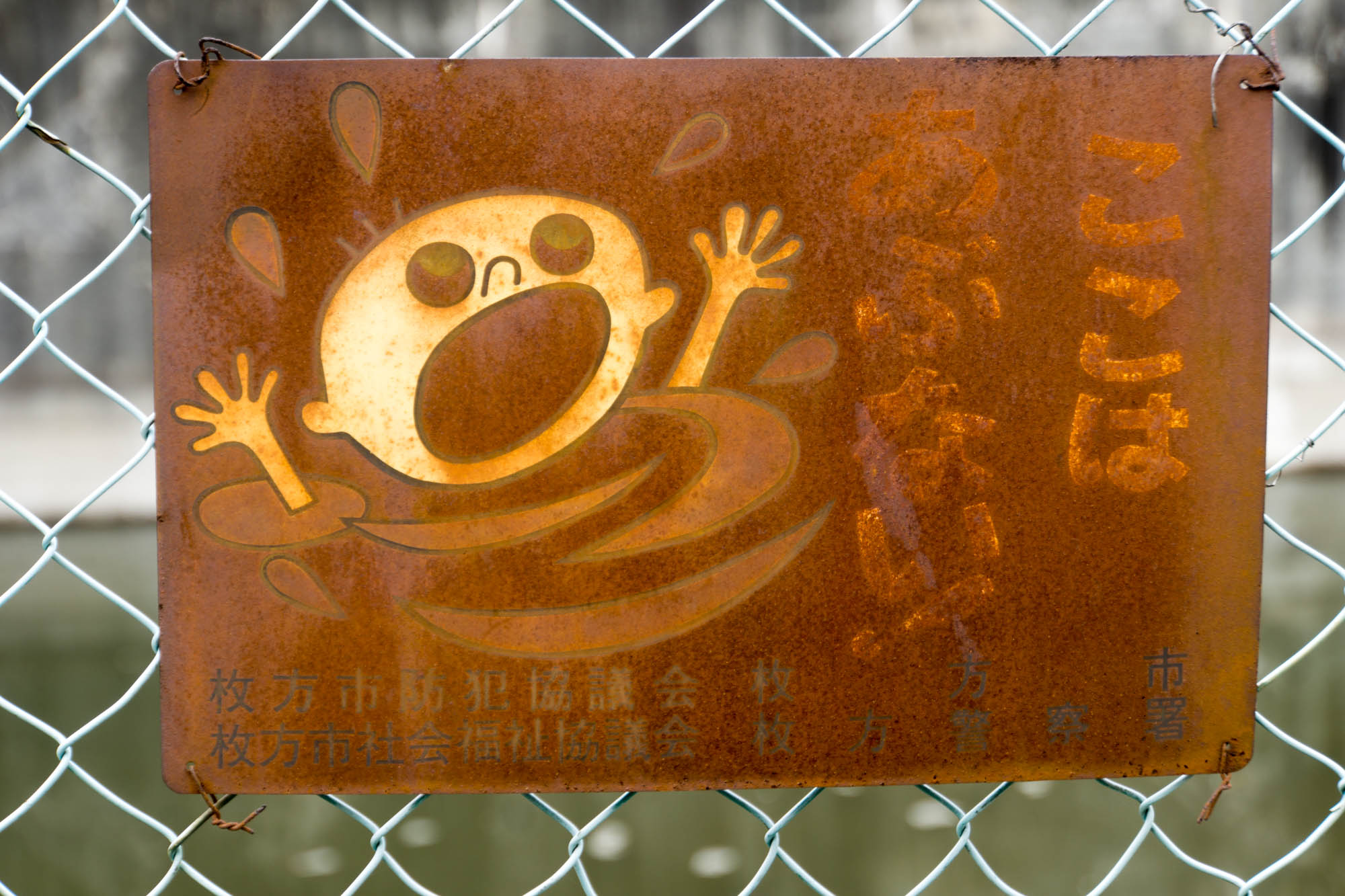 なにが言いたいってこの看板、カモフラージュ柄みたいなんです!いわゆる迷彩柄。