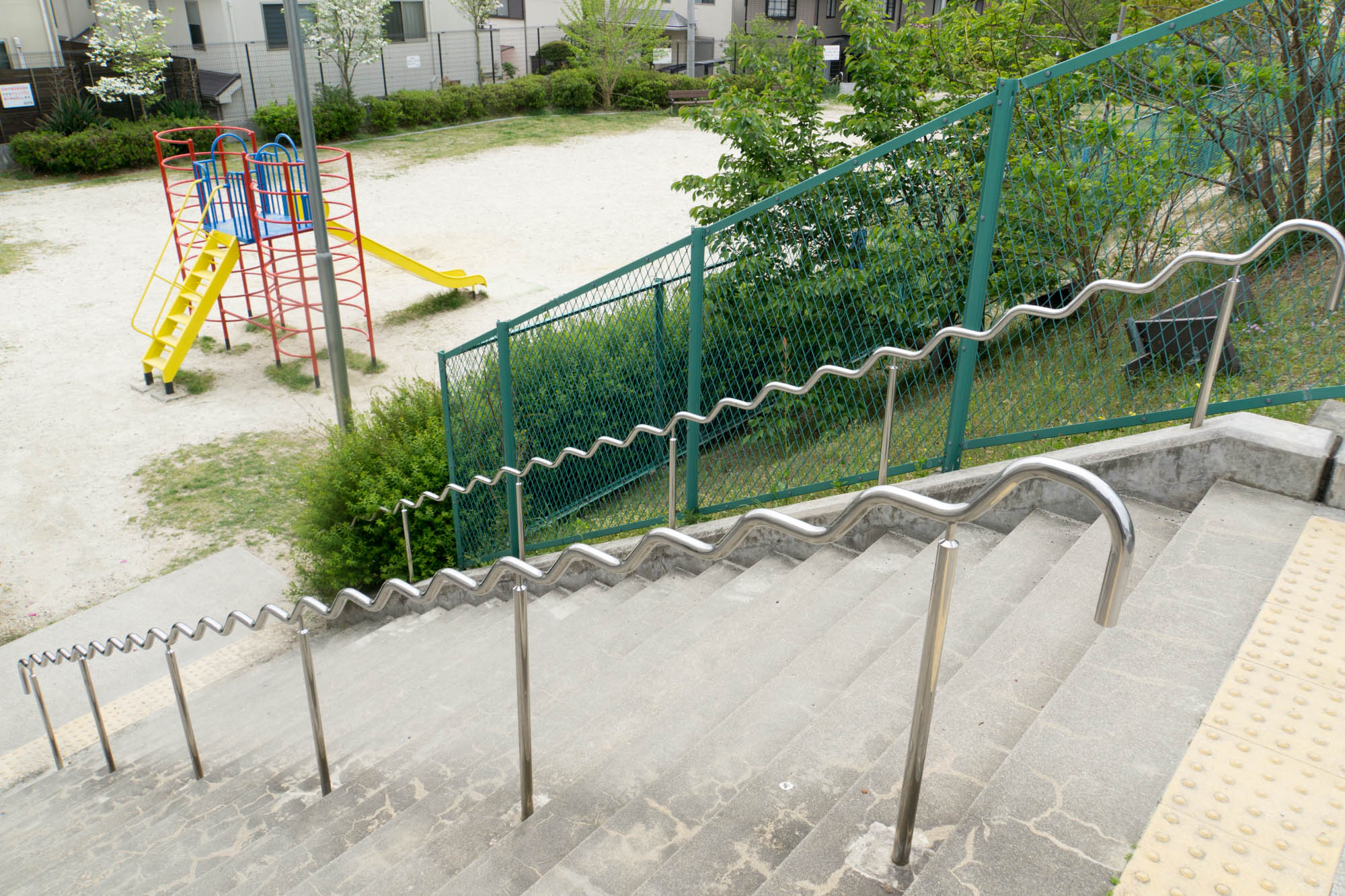 でも一番言いたいのは、この「絶対に手すり跨いで滑る遊びやらせへんで!!」感。