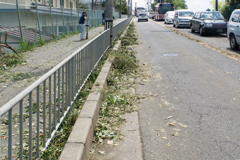 どうもこのあたりは草木がすごかったようで、片付けをされていました。反対車線の混雑っぷりもすごい。