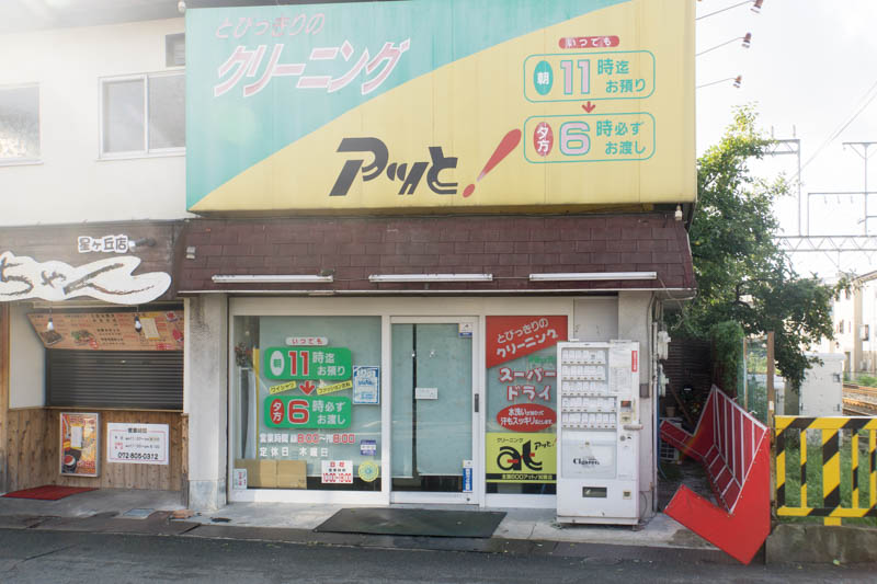 枚方公園駅近くの餃子の名前考え中もテントが大変なことになっていて、その隣りにあるたくちゃんも看板が外れてしまった状態に。