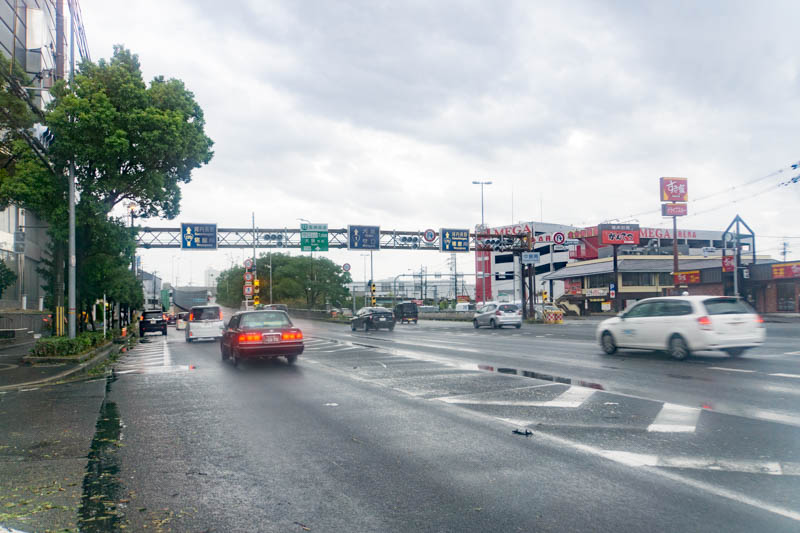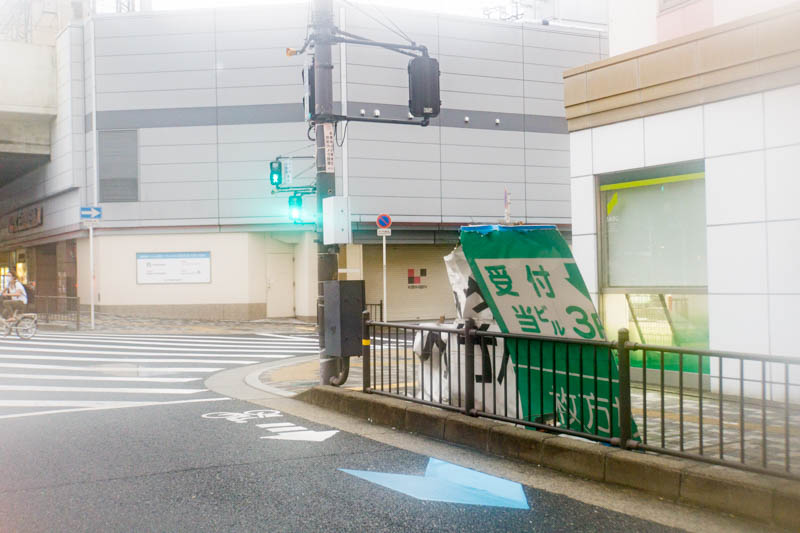 国道170号線と国道1号線の合流地点あたり。看板が倒れています。