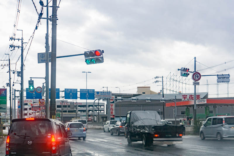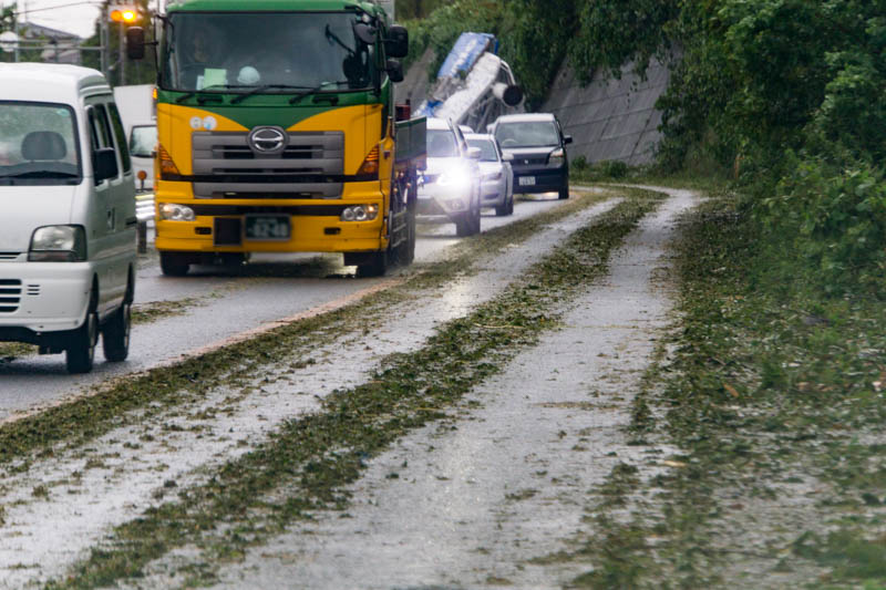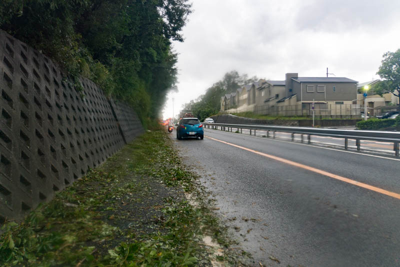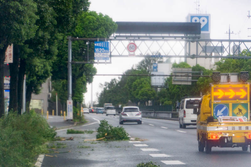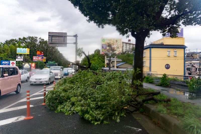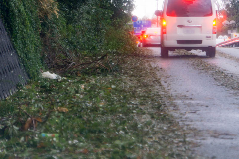 国道1号線の山之上北町あたり。無造作に落ちている樹木。