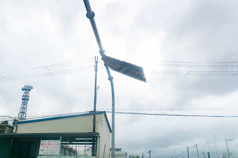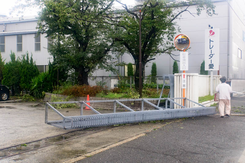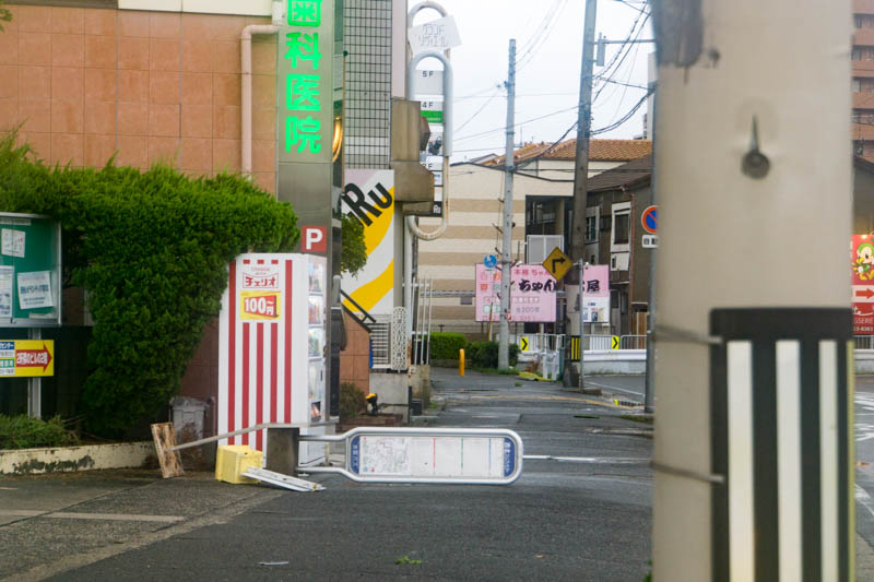 写真を撮っていたところから横をむいたらバス停が倒れていました。