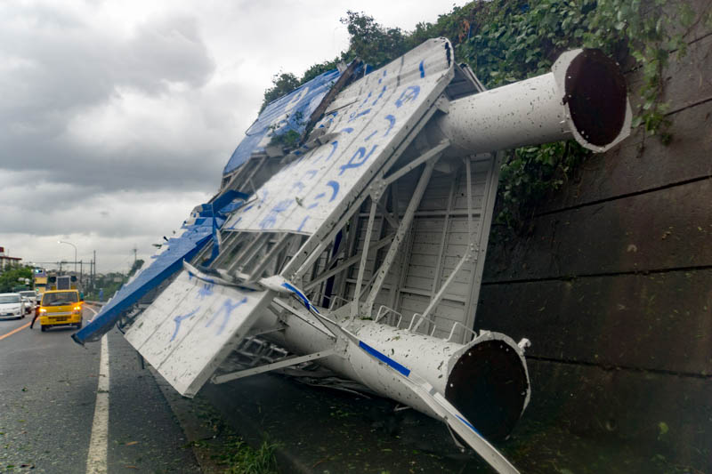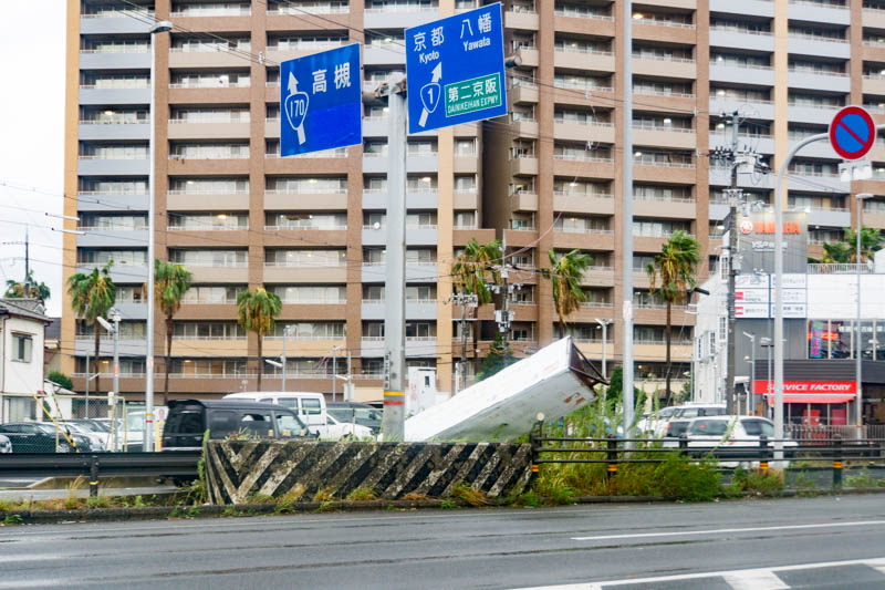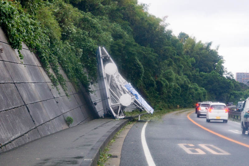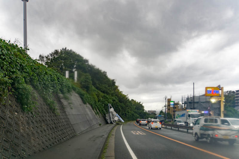 台風21号の影響で国道1号線にパナソニックのデカイ看板が落ちちゃっています。