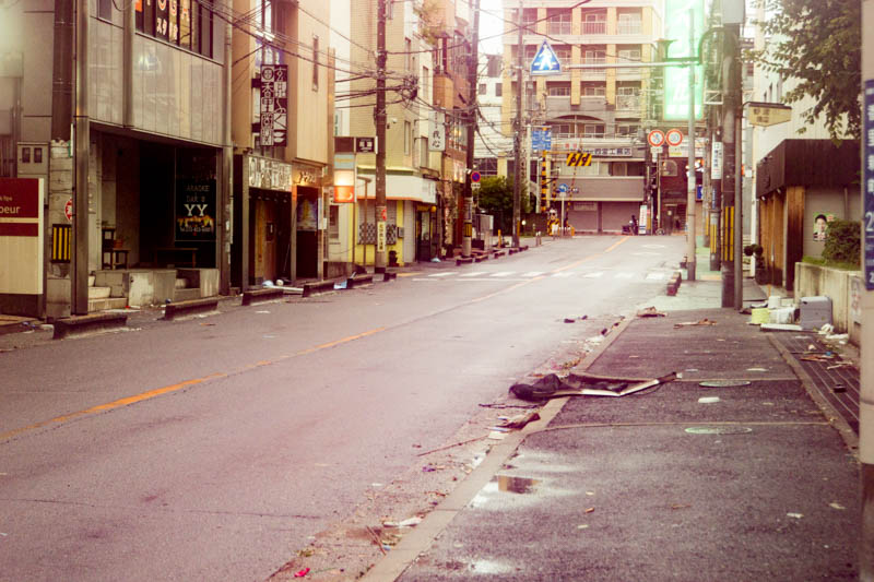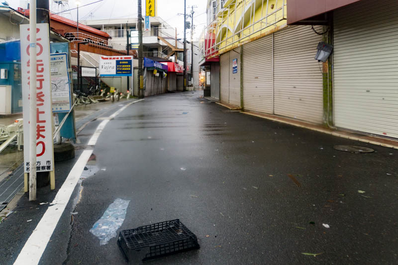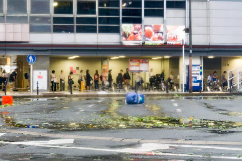 ゴミ箱も落ちていました。奥に写っている行列はタクシー待ちだと思われます。