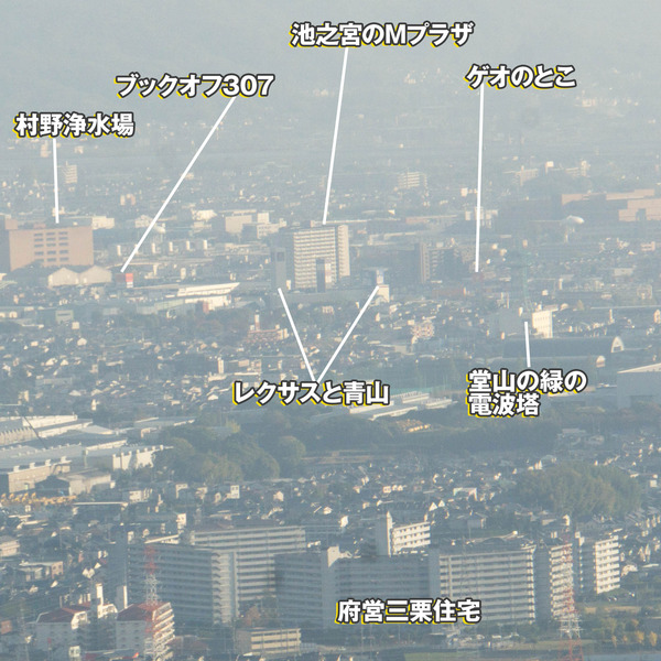 ケーズデンキの赤色も肉眼で目視できました。やはり奥の方は霞んでわかりづらいです。