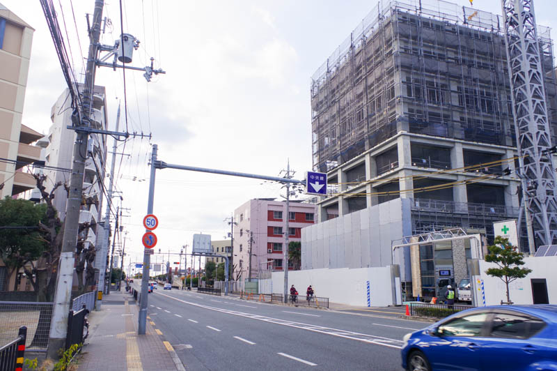 旧1号線沿いの関西医科大学附属病院の側に作っている「(仮称)関西医科大学タワー」の高さが隣のキャンパスと同じくらいになっています。