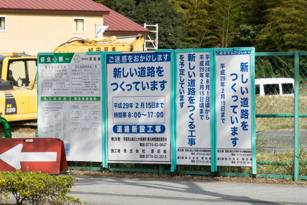 新しい道路をつくっていますとの看板。2月15日まで工事が行われるようです。