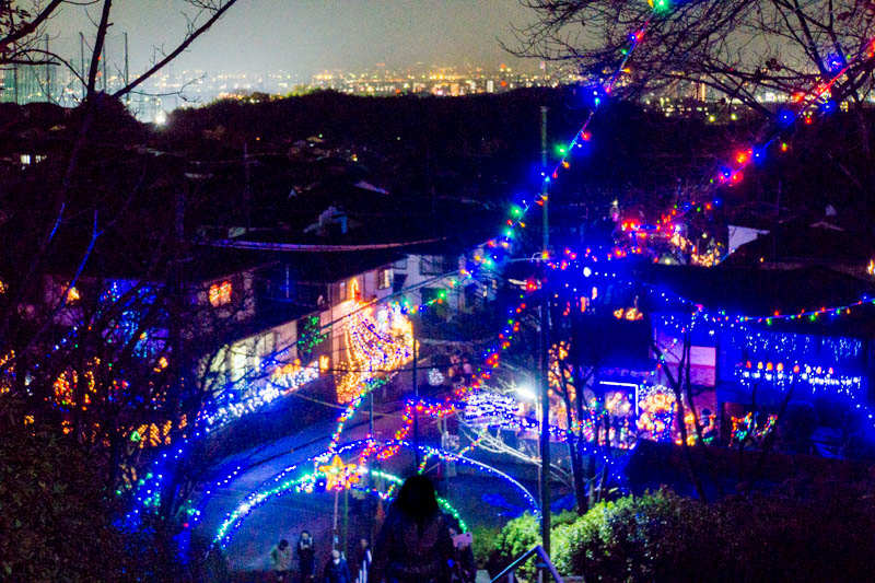 今年で終了を予定している住宅地のイルミネーションイベント「ほしだ山ナリエ」を見に行ってきました。
