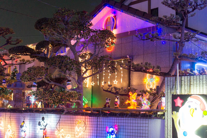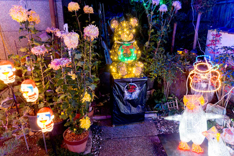 山ナリエというだけはあって、上り坂沿いに住宅が色々とライトアップされています。