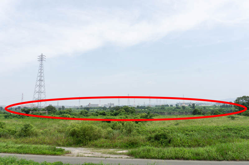 地図で確認したところ、手前の舗装されている道は高槻市で、赤い◯で囲った河川敷のあたりだけ枚方市のようです。