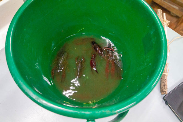 三井先生によると、夏はもっとザリガニが用水路にいたとのこと。気温が下がったらザリガニは土の中や隙間に隠れて姿を見せなくなるそうで、今回は10月前半に取りに行ったのであまりとれず。