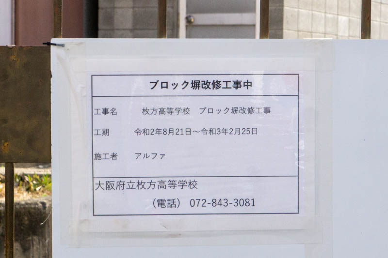 枚方高校を囲っているブロック塀がフェンスになってきています。