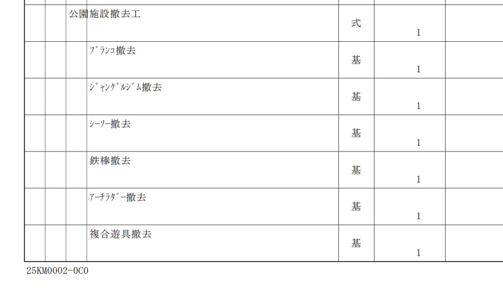 枚方市ホームページの2025年度建設工事(2025年7月1日発注)のPDFを見てみると、遊具を撤去&設置するということが書かれています。