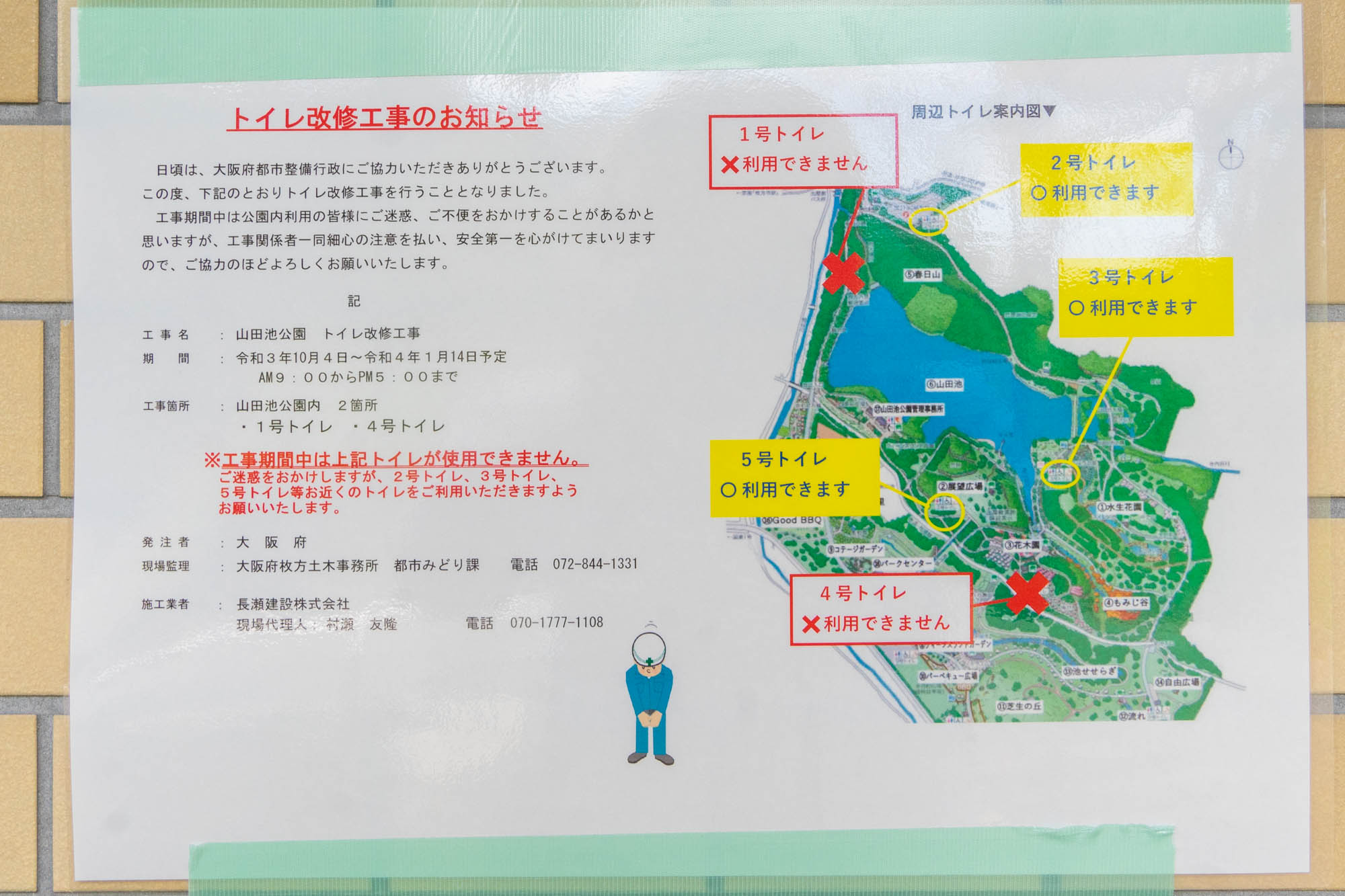 山田池公園の外周の一部が木材で覆われています。