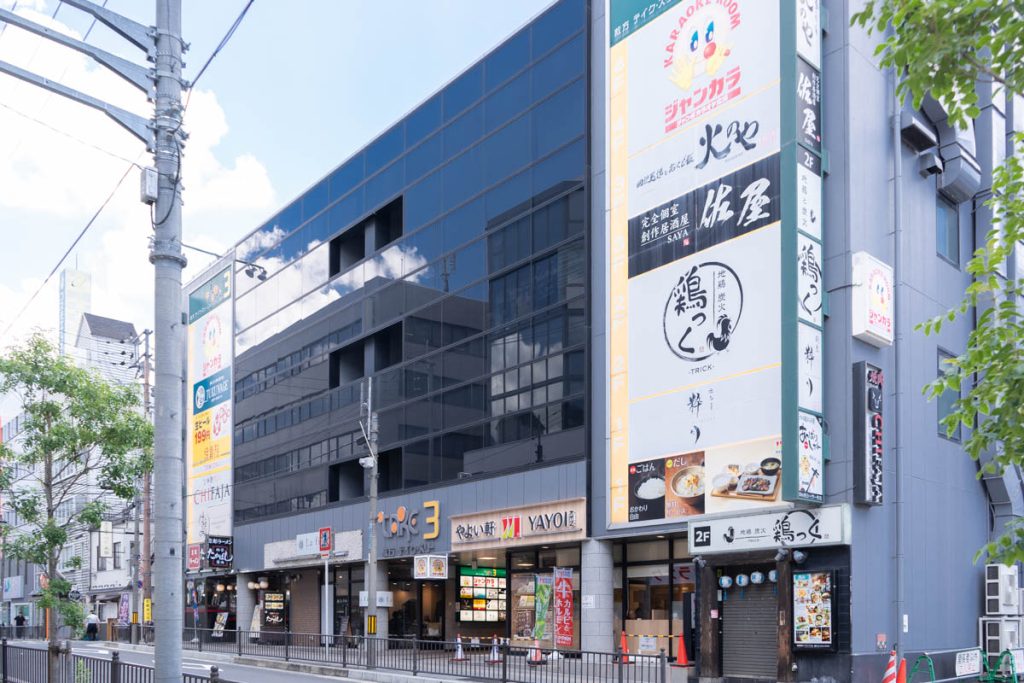 枚方市駅前の「やよい軒 枚方店」の看板が新しいロゴになっています。
