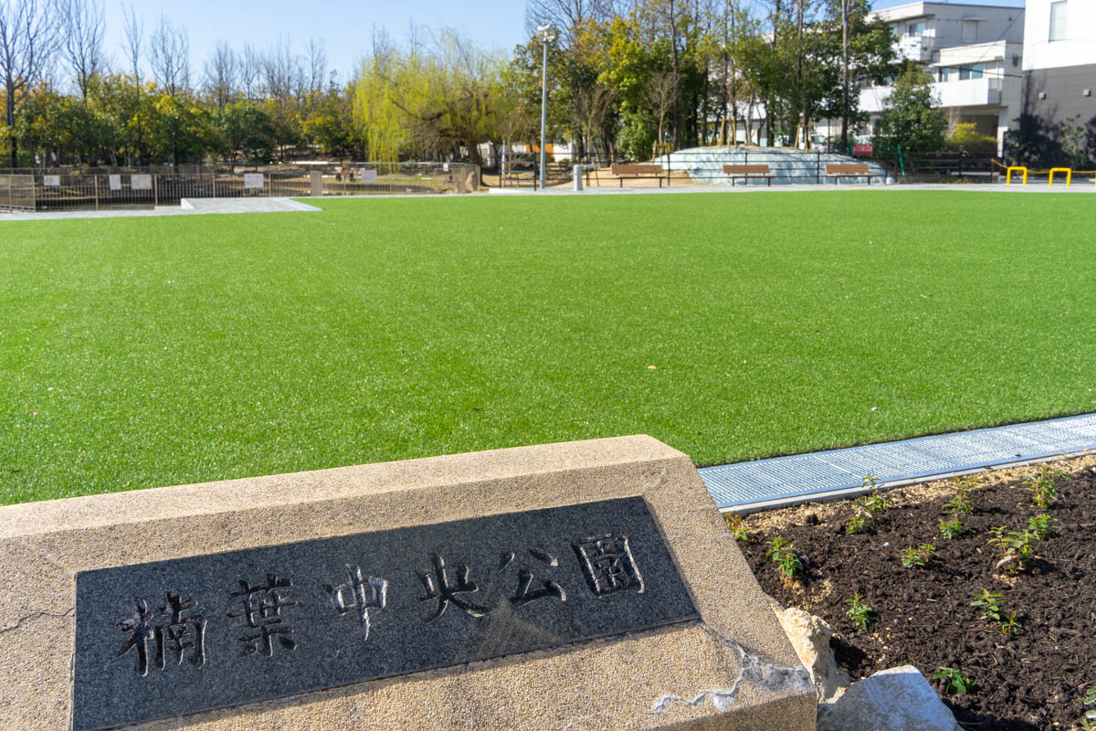 樟葉駅前に作っている天然芝生広場は5月11日より一般開放される予定だそうです。